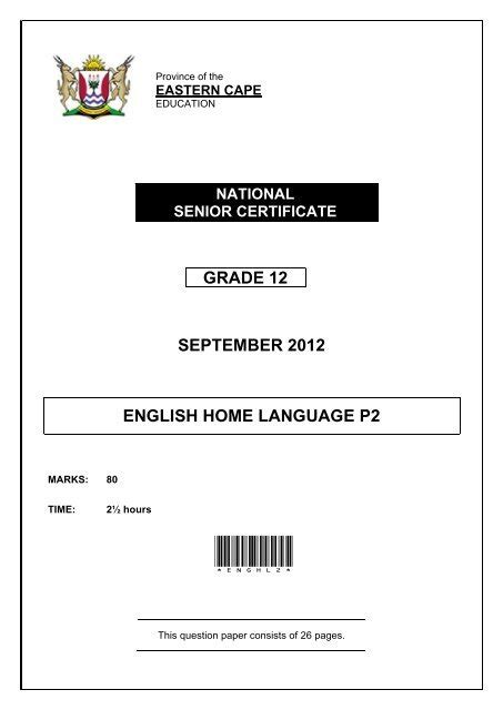 Read Grade 12 September 2012 English Home Language P2 PDF